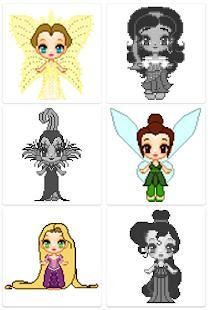 Ada sudah banyak menarik seni pixel karakter kartun putri dan buku nomor bagi Anda untuk mewarnai.