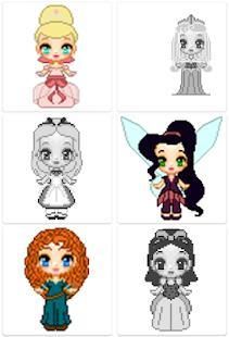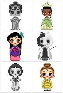 There’re many interesting of art pixel cartoon princess characters and number books for you to coloring.