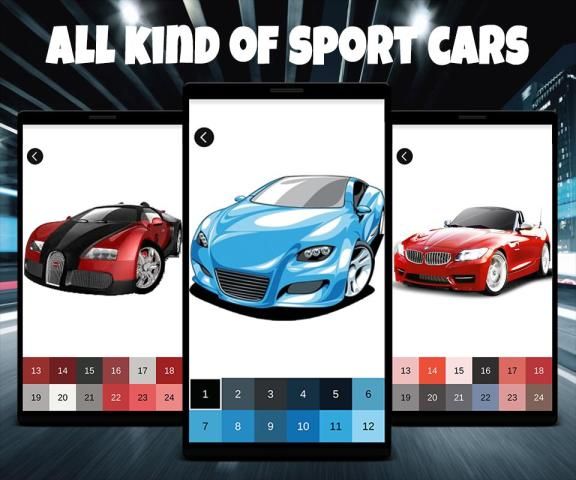 Coloring Speed Cars Pixel Art Game let's you Color by Number the fastest Racing Cars like Ferrari, Lambo or Porsche in all colors.