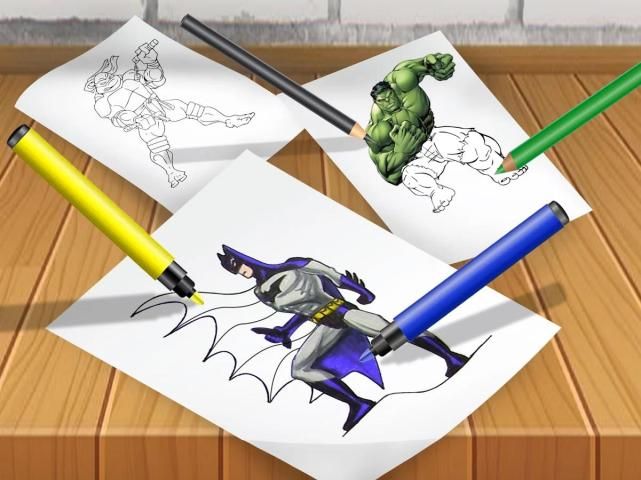 • Pilih berbagai warna untuk melukis buku pewarna superhero.