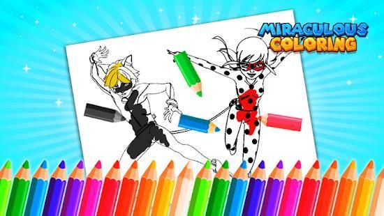Ladybug and Cat Noir coloring pages is a free app for boys and girls. Paint your favorite Miraculouse Ladybug and Cat Noir cartoons : Marinette Dupain-Cheng; Adrien Agreste;
