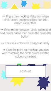 Android games to test your brain with matching colors on the circles to colors name text.