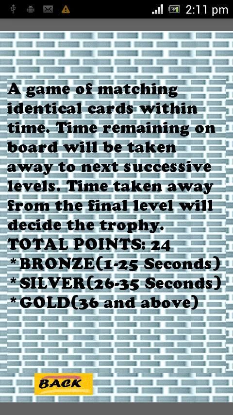 Sebuah permainan pencocokan kartu identik dalam waktu. Waktu yang tersisa di papan akan dibawa ke tingkat berturut-turut berikutnya. Kesulitan akan meningkat pada tingkat berikutnya. Membalik kartu Identik pada skor berturut-turut titik. Jika kartu tidak cocok, Ternyata kembali atas. Tujuan permainan ini adalah untuk menyelesaikan dalam waktu. Dalam ColourPad, wisata Waktu telah dimungkinkan, secara harfiah. Waktu sendirian akan terbawa ke setiap tingkat. Game ini dirancang untuk meningkatkan memori dan bersenang-senang. Jangan menyerah.