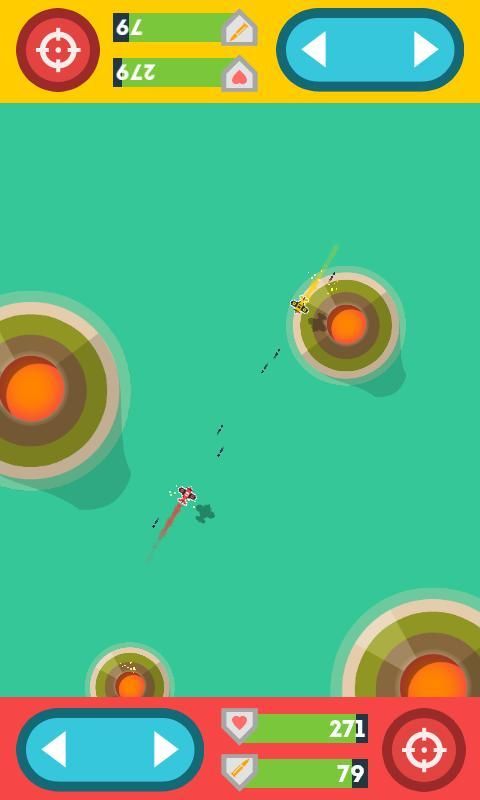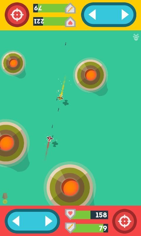 » Choose a side of phone (dogfight mode). If you play on the upper side you will be the yellow plane, if you play on the bottom side you will be the red plane. Keep an eye on your fighter, the planes are small so that two players can play on the same device.