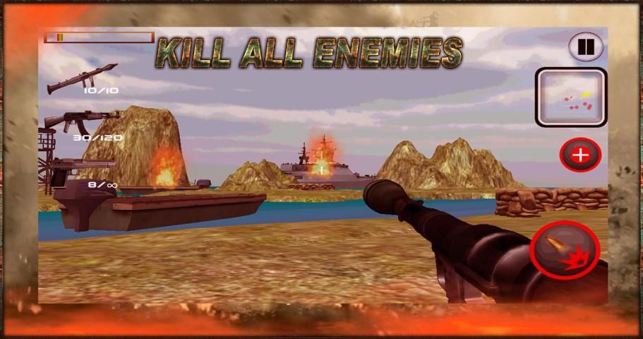 Commando had on duty as Frontline Commando at war time of WW2: D-Day.You are the ghost commando and you are the fight with warrior field. Naval warfare WARSHIP on special mission in the battlefield! Sudden attack by air fighter and submarine distory warship most commando dead other were wounded and captured to prision.
