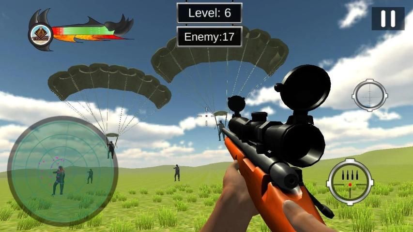 Musuh thats di Anda menghadapi hidup dengan bentuk zombie komando dan parasut di udara.