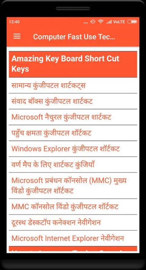 komputer teknik yang cepat aplikasi hindi menyediakan cara pintas keyboard yang berguna dalam kategori yang berbeda.