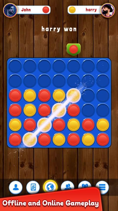Sekarang Anda dapat memainkan Connect 4: Empat dalam permainan Row melawan Pemain lokal, komputer, pemain online atau Bermain dengan teman dan mengasah keterampilan strategis Anda kapan pun atau di mana pun Anda mau!