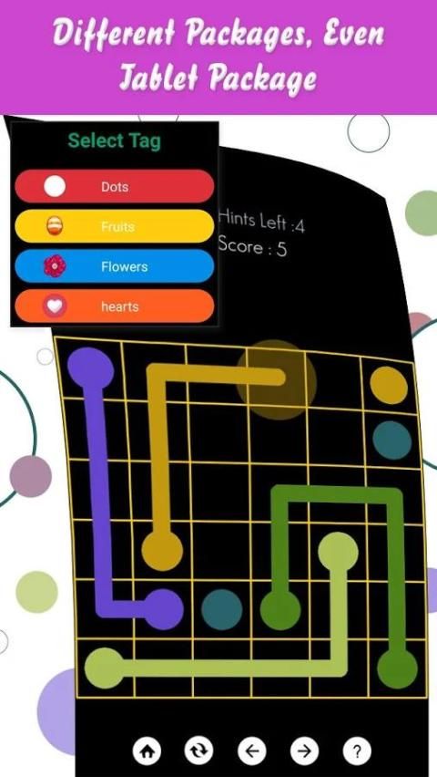 Terhubung warna senada dengan pipa untuk membuat Memindah. Pair semua warna, dan menutupi seluruh papan untuk memecahkan setiap teka-teki di Connect Dots: Pindahkan Gratis.