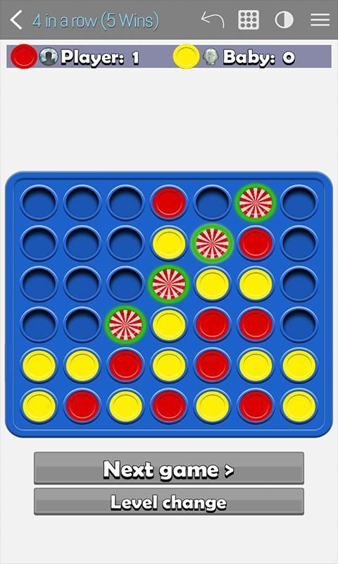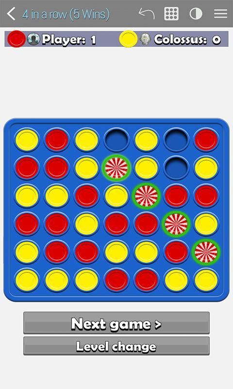 4 in a Row adalah gim yang sempurna untuk dimainkan melawan teman-teman, atau kapan pun Anda punya waktu luang. Setiap pemain bergiliran memilih kolom untuk memasukkan chip. Tujuan Anda adalah selalu menghubungkan empat chip warna Anda sendiri secara berurutan, baik secara vertikal, horizontal atau diagonal. Pemain pertama yang melakukannya memenangkan permainan.