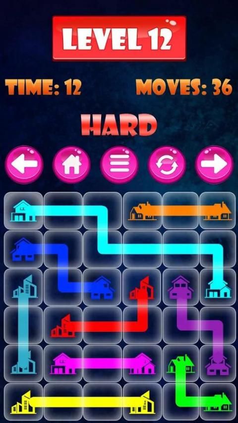 Menghubungkan Saluran gratis untuk menyelesaikan tingkat. Anda perlu menghubungkan semua warna rumah dan mengisi papan untuk menang. Jika Anda melewati warna yang berbeda, Anda akan menghancurkan aliran!