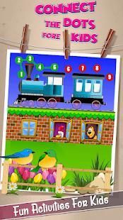 dot game ini hadir dengan set besar 100 + gambar semua gratis. Kid menghubungkan titik meliputi daftar lengkap dari gambar dari Buah, Hewan, Bunga dan banyak benda lainnya. Ini akan membantu untuk meningkatkan imajinasi dan koordinasi tangan-mata sementara menghubungkan titik-titik.