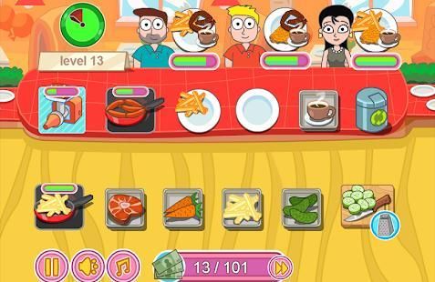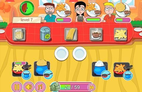 Membuka restoran Anda dan melayani pelanggan Anda dengan banyak pilihan makanan. Mengumpulkan uang Anda setiap kali Anda melayani pelanggan pada waktu. Bersenang-senang dengan permainan manajemen memasak menyenangkan ini.