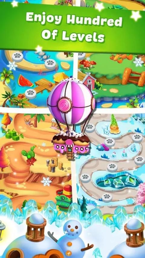 - Swap, menghancurkan, dan selai jalan Anda melalui pulau-pulau bertema fantastis