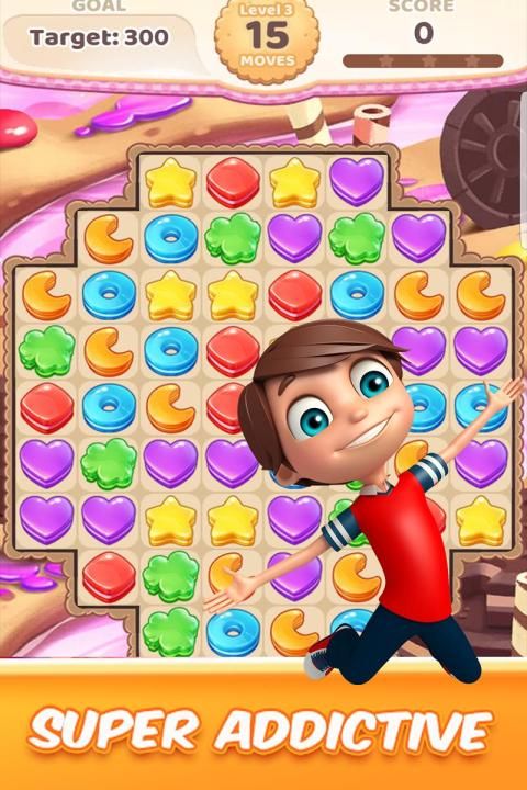 SWAP, SWIPE and MATCH 3 or more same adjacent cookies to master the fun of casual match 3 game. Escape to this superb fantastic Cookies jam world and match to sweet triumph!!