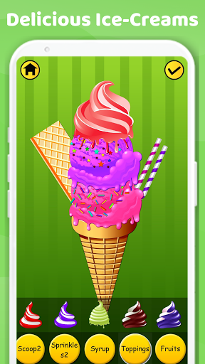 - Siapa yang tidak menyukai es krim? Anda dapat memilih dari jenis kerucut dan sendok rasa favorit Anda dengan dekorasi lezat, buah-buahan, topping, sirup