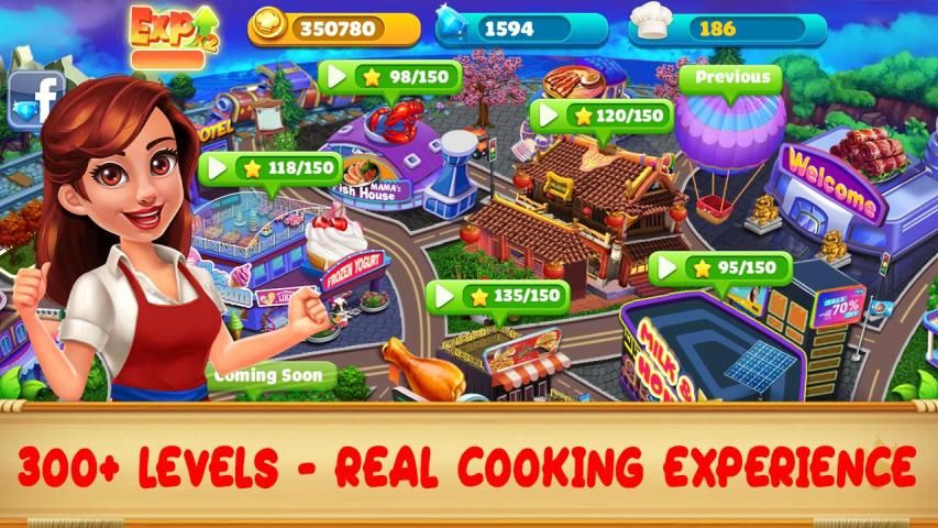 - Mainkan 300+ level berbeda dengan tantangan sulit untuk menjadi koki memasak bintang top di restoran manajer coffee cooking offline.