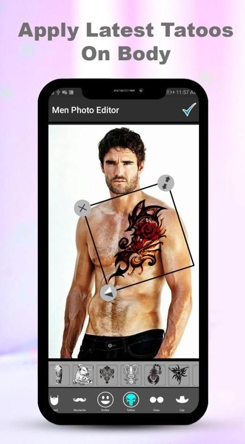 Editor pria pembuat tato aplikasi gratis mendukung 100+ tato dan itu adalah aplikasi editor tato pria terbaik.