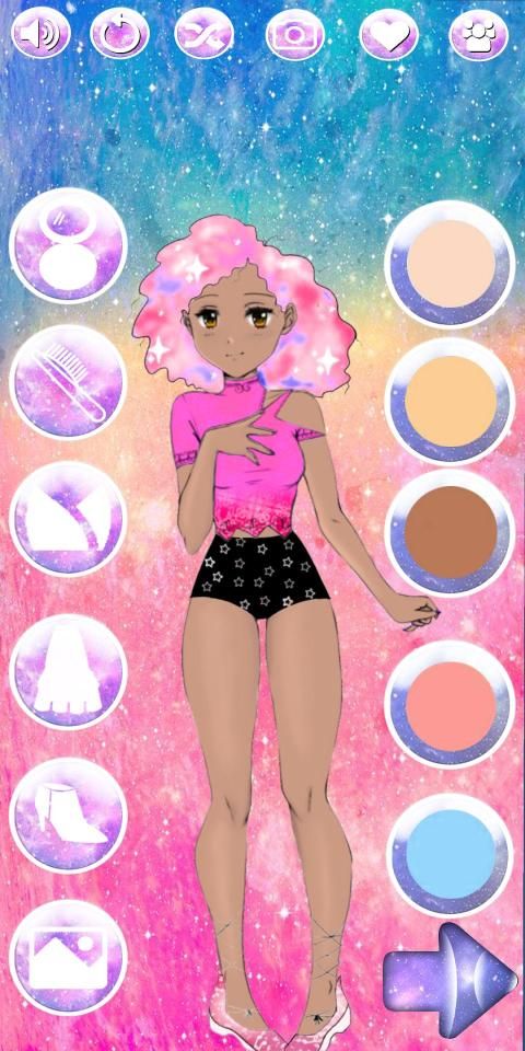 There are many different skin tones to choose from and don't forget to change out the galaxy backgrounds! With a variety of clothes, shoes, and hairs to choose from it's impossible to not have your girl look like a star!
