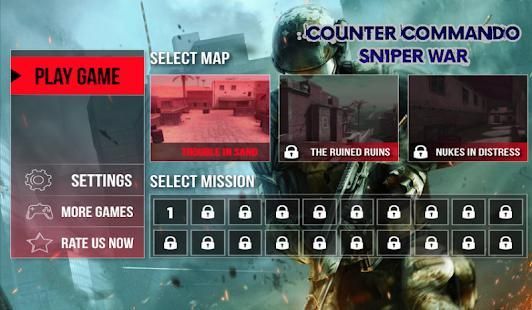 Ambil FPS Kontra Commando Sniper Wargame gratis di toko android, game shooter cerdas untuk android.