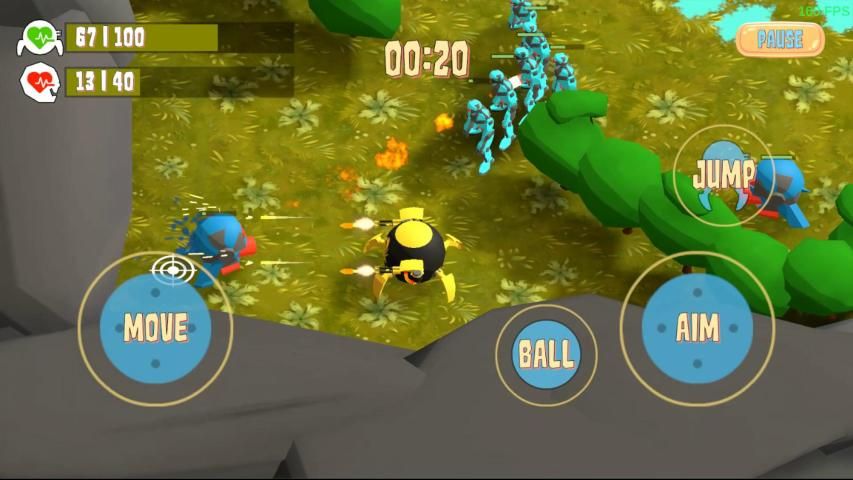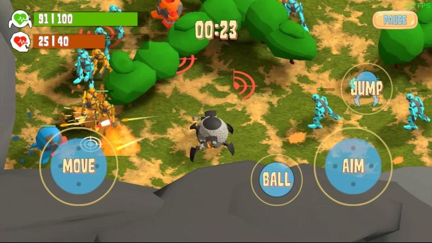 Berubah menjadi mode Bola yang lebih cepat untuk bergerak cepat dan melarikan diri dari tempat yang sempit dan kemudian berubah menjadi mode Pertempuran untuk melepaskan senjata Anda pada robot zombie jahat!
