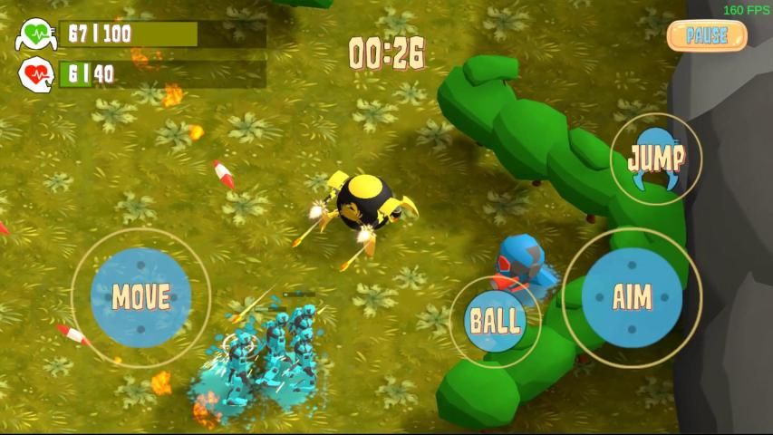 Anda dapat menggunakan 2 senjata apa saja di setiap sisi Craball Anda. Gunakan 2 Blasters atau 1 blaster dan 1 peluncur granat atau apapun yang Anda inginkan!