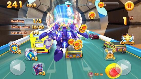 Crash Transform Racing where the cars can transform themselves to real robots and wipe out all the obstacles and opponents on they way to win the race of destiny. Feel the rush, as you tear down the track at breakneck pace in thrilling races. Choose the best hero and car suitable with you. There are five types of superheros, Sweetheart, Careless, Faith and Careful - all of them are transformable cars. It’s going to be bumpy funny rides with special energy boost and special skills specific to each superhero transform car