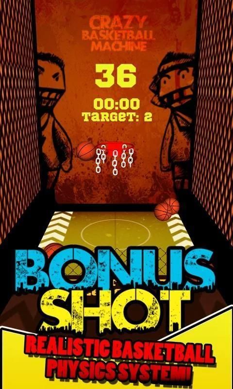 Gila basket Mesin mensimulasikan fisika realistis dan fitur grafis yang hebat, baik lingkungan ruang permainan dan tangan virtual Anda sendiri untuk menembak beberapa rintangan.