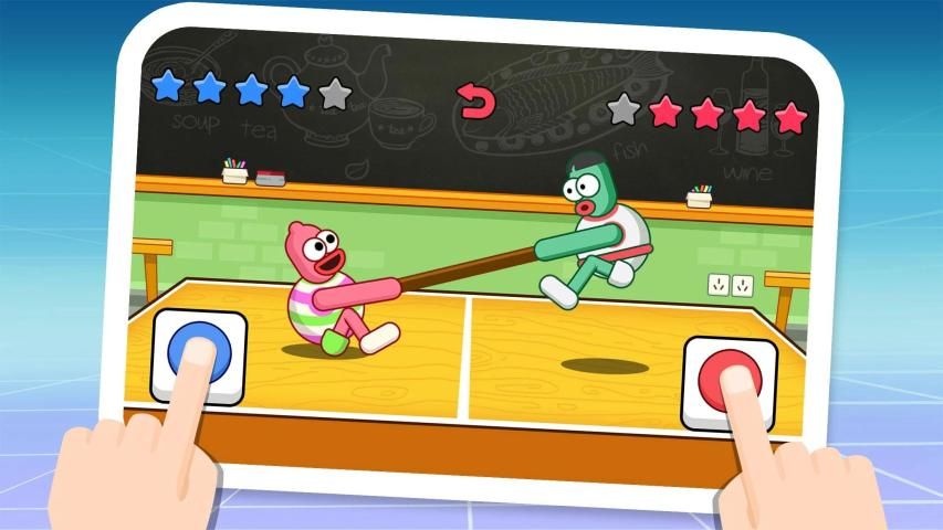 -Ketuk tombol untuk memulai permainan, satu-satunya hal yang perlu Anda lakukan adalah menarik lawan melewati garis tengah. Semakin banyak Anda menang, semakin tinggi skor yang Anda dapatkan.