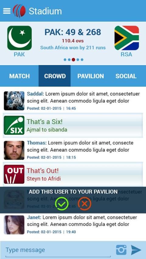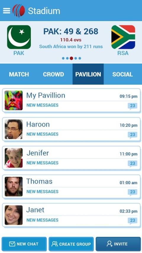 Want to chat with close friends on a Cricket match? Create a group of friends and start exchanging your thoughts with Cricket Companion’s “Pavilion”.