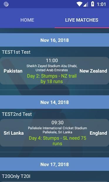Selalu perbarui diri Anda dengan Pertandingan Kriket, termasuk Piala Dunia, Internasional, dan Domestik.