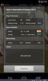- Track your player’s cricket career history and awards