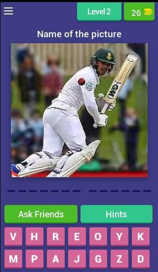 Pemain kriket Quiz Game dengan lebih dari 50 Tingkat dan Sebagian besar pemain kriket populer yang tersedia di game ini.