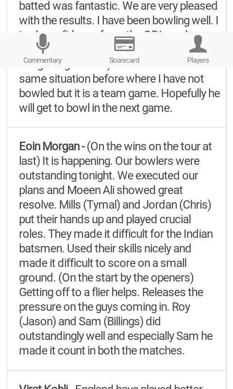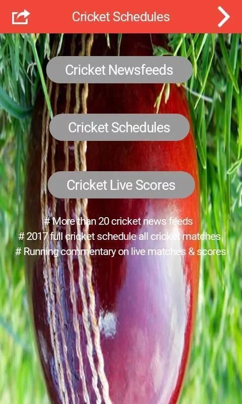 Jadwal Cricket 2017 aplikasi juga memberikan Ball oleh bola hidup kriket komentar dan skor yang tersedia untuk semua pertandingan kriket