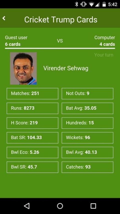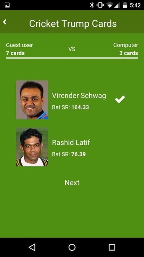 Kartu truf Cricket. Pilih atribut terkuat Anda kriket favorit Anda dan pertempuran itu keluar dengan kartu komputer