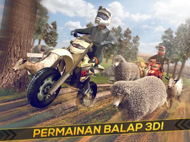 Mulai sepeda motor Anda dan datang ke perlombaan sepeda motor gila melalui pedesaan!
