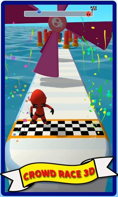 Sangat menyenangkan dan mudah dimainkan Crowd Race 3D. Hindari berbagai jenis rintangan dan balapan melalui berbagai tahap untuk menyelesaikan lomba. Melompat dan membalik rintangan, memanjat tangga, berenang di kolam renang dan pastikan Anda menghindari semua rintangan dan mencapai garis finish dengan aman. Tiga pemain akan balapan pada saat yang sama, jadi Anda harus mengalahkan mereka dan menghindari pukulan dari rintangan pada saat yang sama dan menyelesaikan balapan.