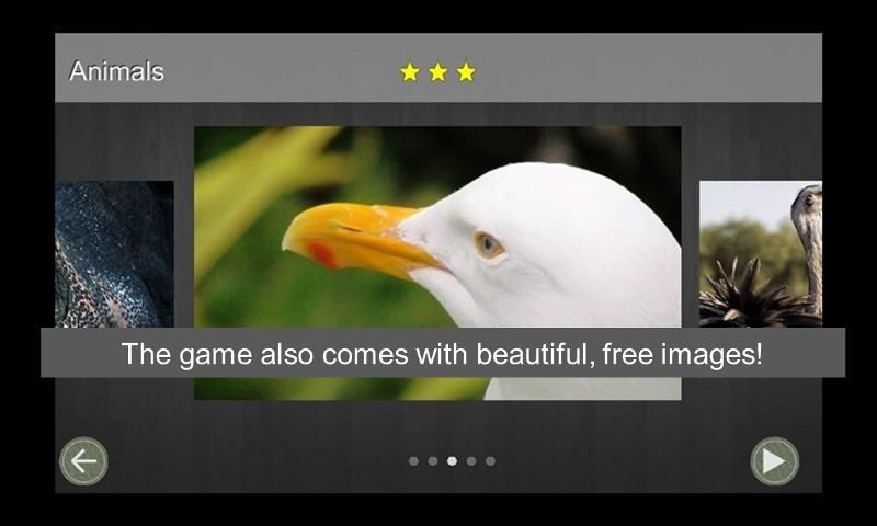 • 35 gambar gratis indah yang sudah datang dengan permainan yang diselenggarakan di 6 kategori gambar yang indah - Hewan, Kupu-kupu, Alam, Landsekap, Spider, Universe dan Perkotaan