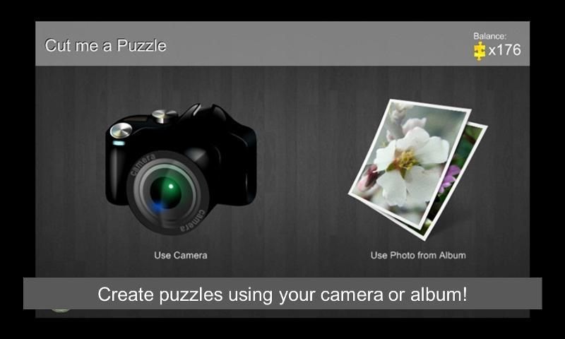 • Mengambil gambar di tempat dengan menggunakan kamera ponsel Anda, atau menggunakan foto dari album Anda untuk membuat teka-teki baru dan kustom