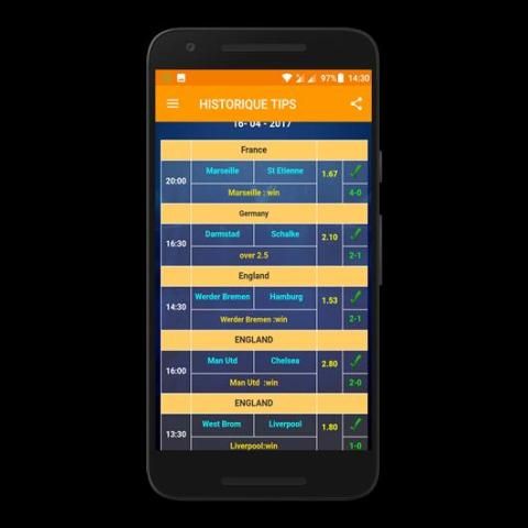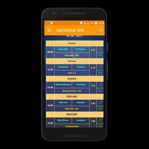 DAILY aplikasi TIPS TARUHAN memberikan prediksi dikategorikan seperti kejutan, sebagian besar-dijamin, babak pertama dan full time, peluang tinggi dan lebih banyak tips sehari-hari dari liga populer.