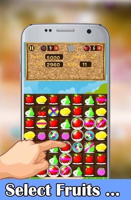 • Swipe dan pertandingan 3 atau lebih buah untuk menghilangkan mereka dari papan.