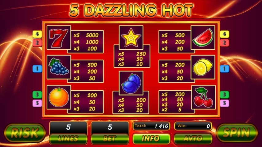 Игровой автомат Dazzling Hot Slot имеет простое оформление, которое выполнено в ярких тонах. Это способствует тому, что игрок может четко сконцентрироваться на красочных символах и контролировать весь процесс игры. Что касается музыкального сопровождения, то оно здесь ненавязчивое.