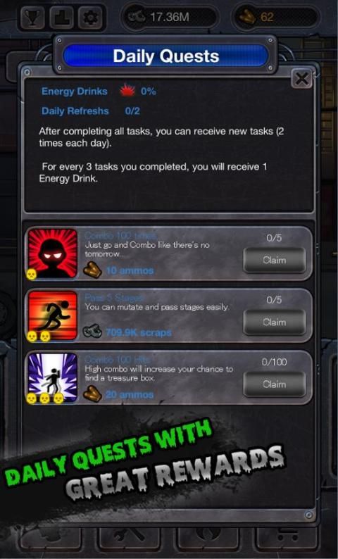 ★ pencarian harian untuk mengisi gudang Anda dengan amunisi dan penggemar