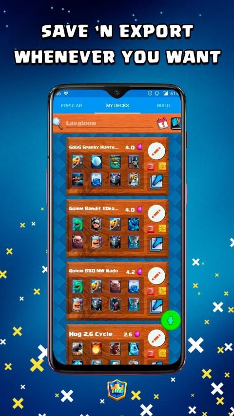 Deck It for Clash Royale is an app where you can BUILD, STORE and SHARE an unlimited number of decks!