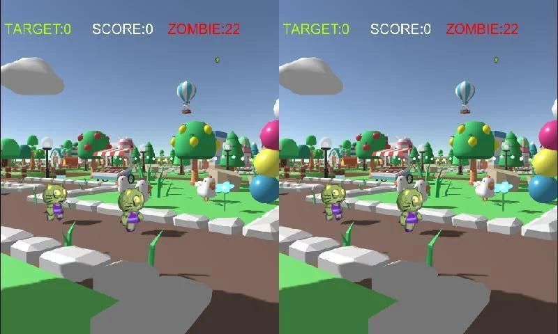 Permainan dibagi menjadi mode VR dan mode normal. Dalam mode normal, tindakan untuk mengontrol karakter utama melalui tombol virtual, menembak dengan mengklik tengah layar.