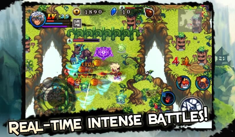 Tidak ada waktu untuk berkedip dengan setan menyerang Anda dari setiap sudut! Bergerak dan melawan gerombolan setan dengan serangan normal Anda, atau mengisi combo akhir Anda dan berbaring limbah untuk makhluk busuk! Cast aura setan, menyerang dan memanggil mantra juga!