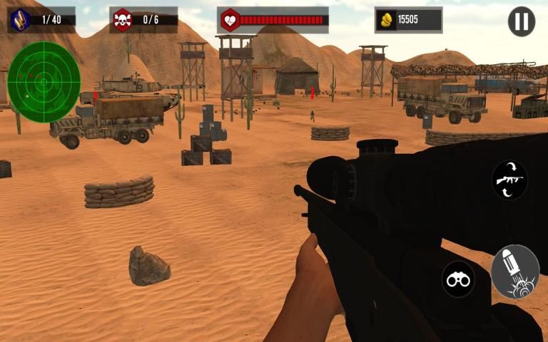Ini adalah nyata 3d sniper penembak tempur tepat di padang pasir hangat di mana musuh komando dilengkapi dengan ak-47, bazooka, rpg, pistol, helikopter, artileri, m16, kita Amerika sniper shooter, tank, f16, F18 pejuang raptor jet. Tampilkan diri Anda abadi dan menjadi tentara tugas.