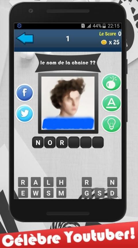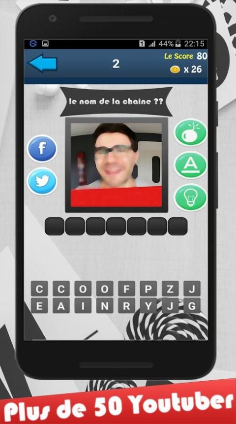 Dalam aplikasi ini Anda harus Tebak La Chaine Youtube, Anda harus tahu nama rantai youtuber setelah melihat fotonya, kemudian menulis namanya dengan benar untuk bergerak ke tingkat berikutnya.