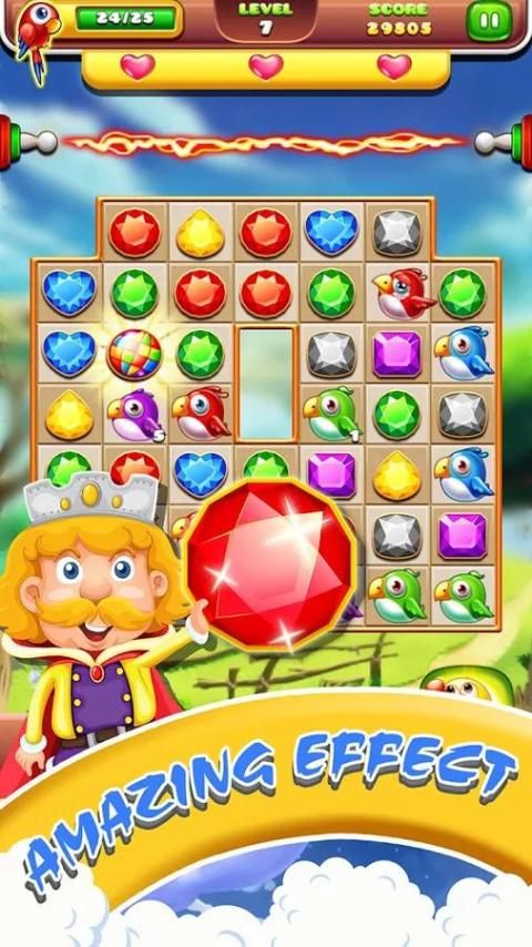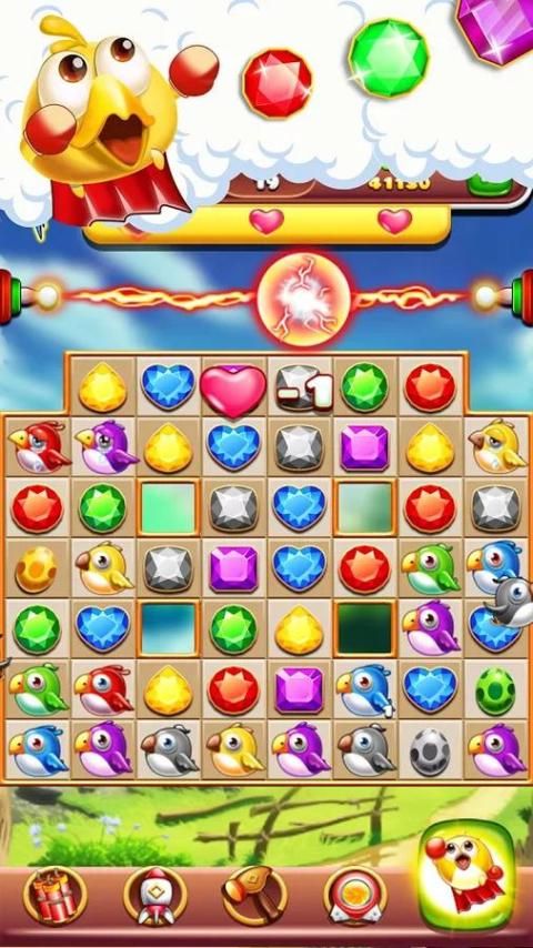 ★After each turn of arranging diamonds but not saving birds, the birds will jump over a line. If your birds are not rescued early, they will reach the lightning line. 3 birds are not accepted to reach the lightning line.