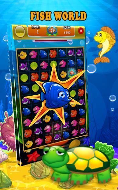 - Crush to match three or more same fish in a line